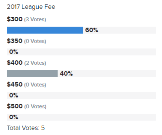 Determined to be $300 per the poll below which closed on October 7, 2016